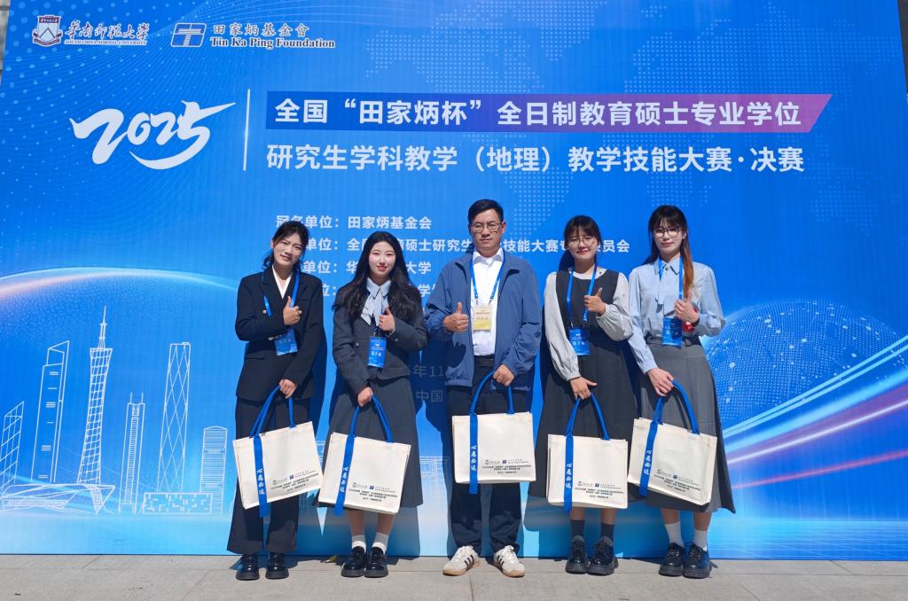 11月21日至22日,2025年全国“田家炳杯”全日制教育硕士专业学位研究生学科教学(地理)教学技能大赛决赛在华南师范大学顺利举行。经过激烈角逐,皇冠APP体育24级学科教学(地理)专业硕士研究生表现优异,共四人斩获佳绩。其中,徐冰同学荣获二等奖,杨艺丹、杨艳同学分获三等奖,马硕同学获得优秀教学设计奖。徐丰老师荣获优秀指导教师奖。