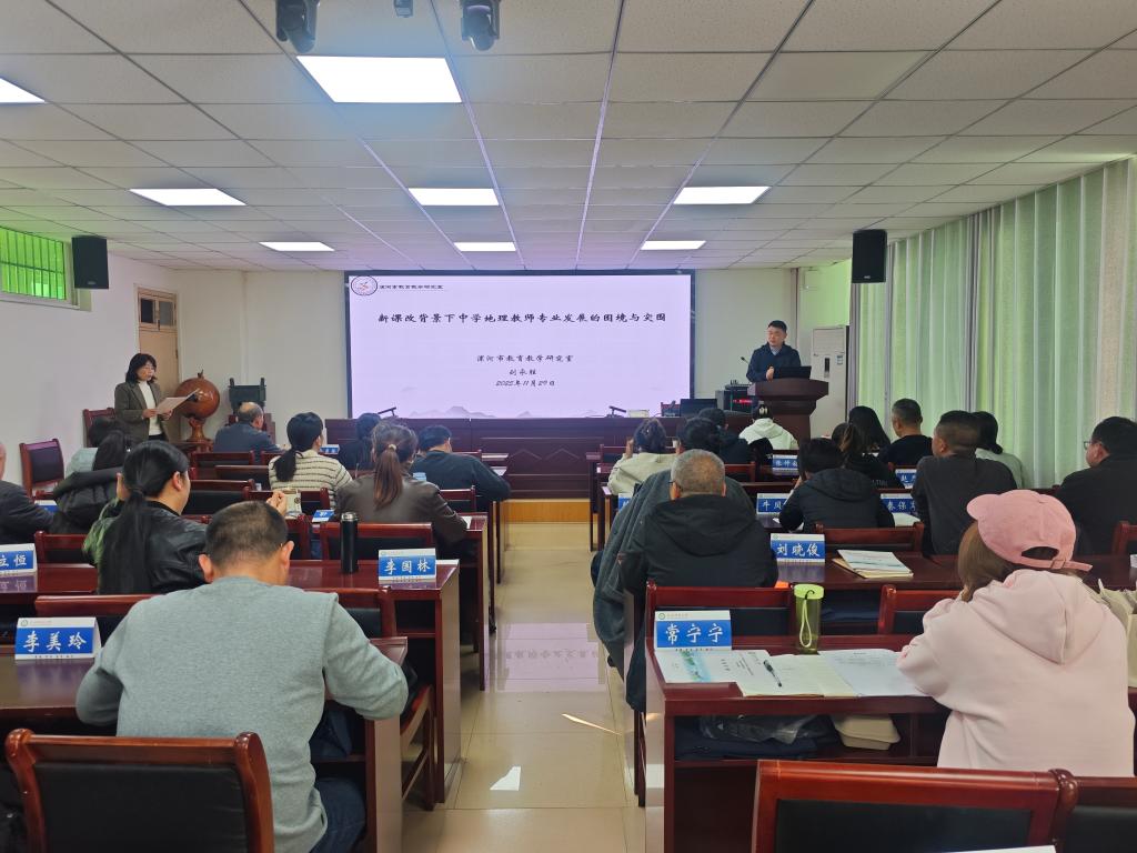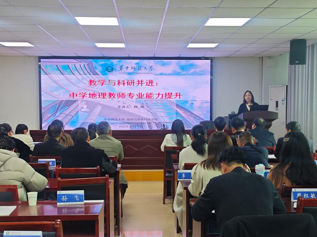 11月10日下午,华中师范大学梅琳教授于理科楼南楼410会议室为我校师生作了题为“地理教师专业发展与科研能力提升”的讲座。梅琳教授围绕教师专业发展的内涵、地理教师专业发展、地理教师科研能力提升以及教学科研结合等方面,通过理论讲解与案例分析,阐述了地理教师应具备的学科素养、教学技能与综合育人能力。她通过大纲展示与互动讨论,帮助教师把握重点、分享经验,有效更新了教学理念与方法,为师范院校深化教师教育研究、优化学科培养模式提供了鲜活的案例。
