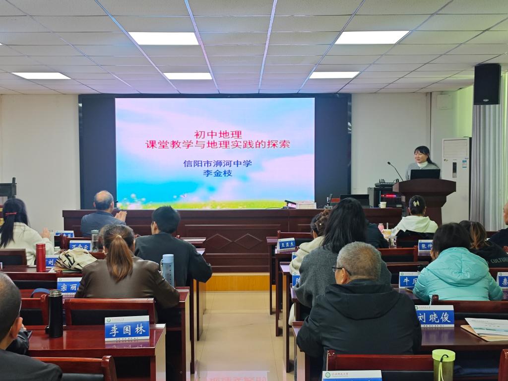 11月29日上午,信阳浉河中学高级教师李金枝于理科楼南楼410会议室作了题为“初中地理课堂教学与地理实践的探索”的讲座。李老师系统解读了新课标理念,分享了从教学策略、试题命制到高效课堂的实操方法,并重点展示了学生自制地理模型及户外石漠化考察等丰富的实践案例,以《因地制宜发展农业》的“同课异构”为例,生动诠释了地理与生活的融合。本次讲座理论结合实践,为参会师生提供了可借鉴的教学思路与实践路径。