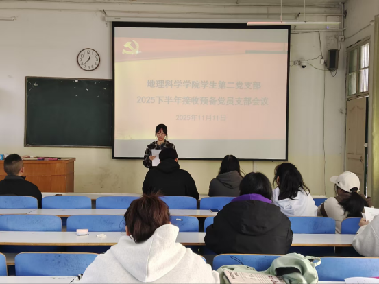 11月11日,皇冠APP体育学生第二党支部2025年下半年接收预备党员支部大会于教三104顺利召开。支部书记魏巍、支部全体党员及2025年下半年发展对象共同参会。会议由魏巍主持。