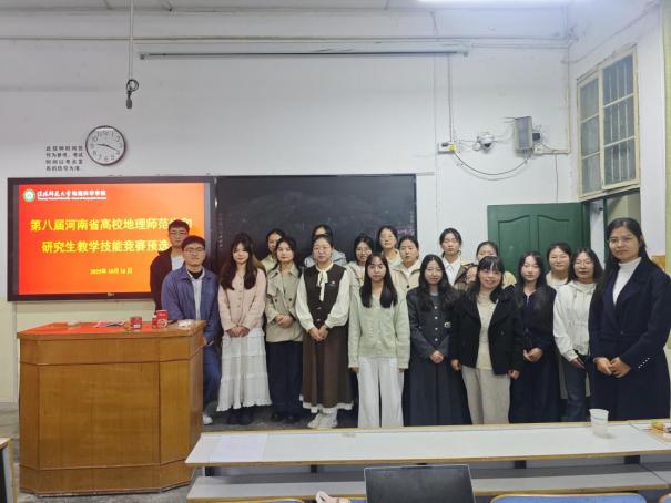 2025年10月18日,皇冠APP体育在J3-01和J3-07教室成功举办第八届河南省高校地理师范生和研究生教学技能竞赛预赛。本次预赛分为两组,第一组在J3-01教室,郜彗副教授、李秀美副教授及研三学生杨灿灿担任评委;第二组在J3-07教室,颜伟副教授、张向敏副教授及研三学生张旭担任评委。本次预赛共37位研究生参加。
