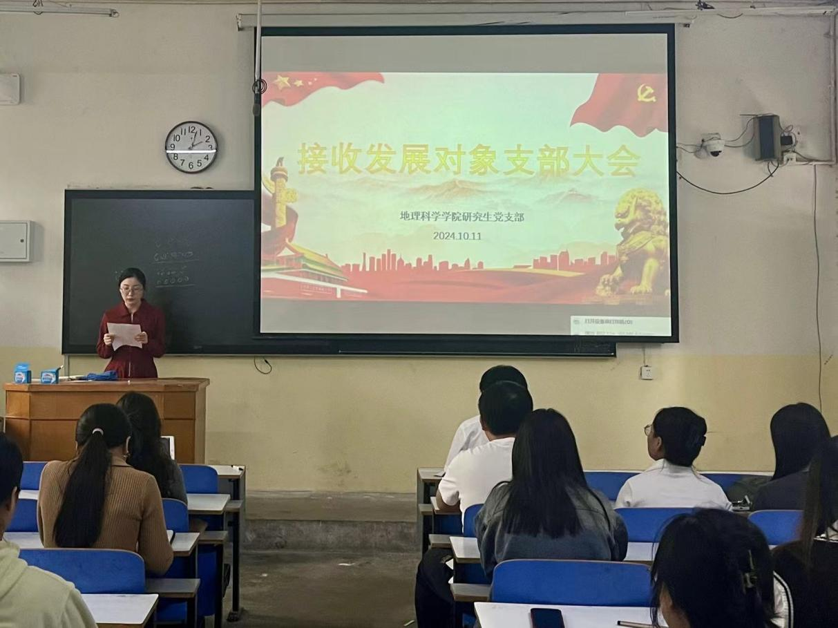 2024年10月11日,皇冠APP体育研究生党支部2024年下半年确定发展对象会议于教三01教室顺利召开。全体党员、预备党员及入党积极分子共同参与本次会议。会议由支部书记张中典主持。