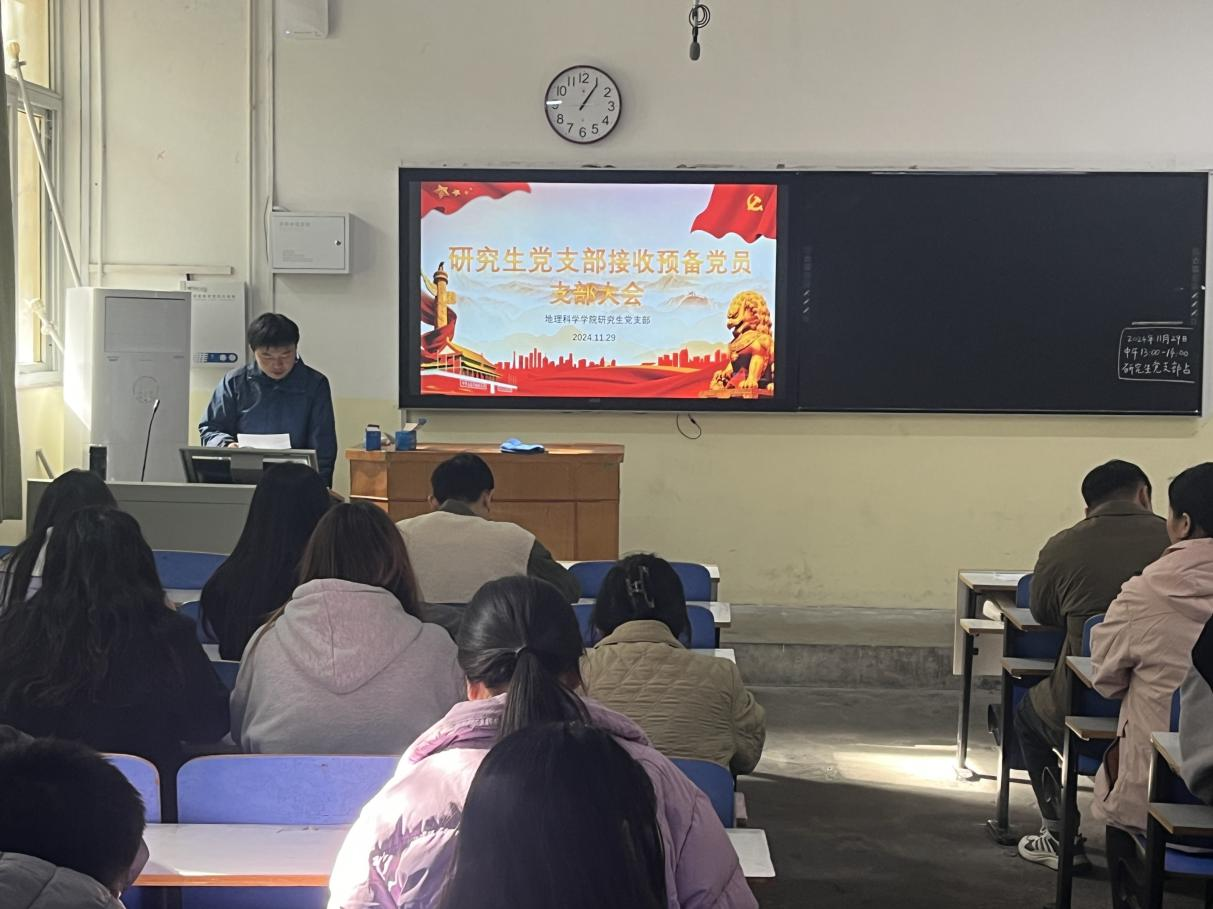 11月29日,研究生党支部在教三01教室召开了2024年下半年接收预备党员大会。支部全体党员参加了会议,会议由支部书记张中典主持。