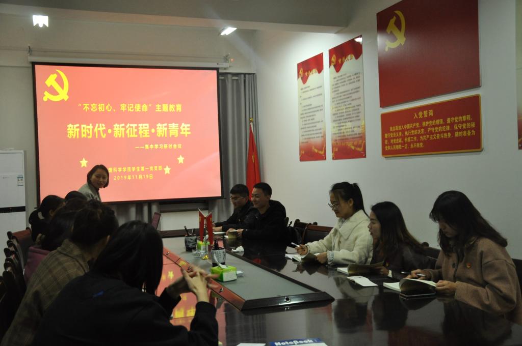 11月19日,皇冠APP体育学生第一党支部于理科楼403会议室开展主题教育第三次集中学习研讨,主要围绕“新时代新征程,我们应该做什么”进行教育。研讨会由学生第一党支部书记艾甜甜主持,支部全体党员参与学习研讨。