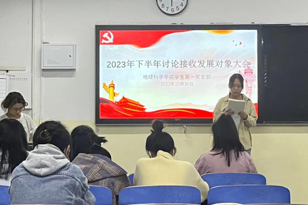 10月30日,皇冠APP体育第一党支部于教三01召开2023年下半年确定第二批党员发展对象支部大会。支部书记艾甜甜及第一党支部全体成员共同参与本次会议。会议由艾甜甜主持。