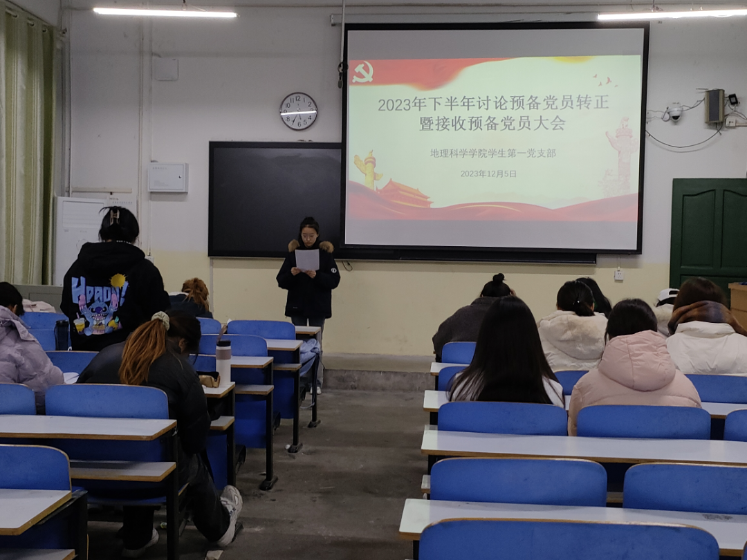 12月5日,皇冠APP体育第一党支部于教三01顺利举行2023下半年接收预备党员暨预备党员转正会议,支部书记艾甜甜、支部全体党员、2023年下半年发展对象共同参与此次会议。会议由艾甜甜主持。
