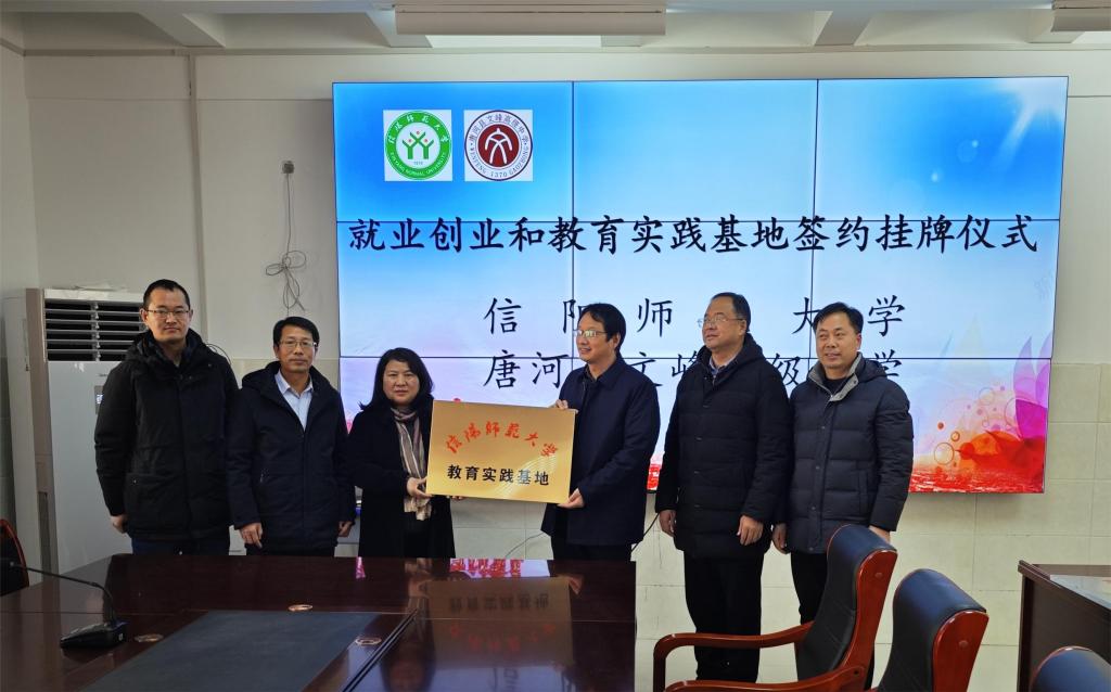 为深入了解学生校外专业实习情况,全面深化校企合作与供需对接,开辟更多优质实习和就业岗位,助力学生更高质量培养与就业,1月25日,皇冠APP体育党委书记宋力、副院长颜俊带领实习实训中心主任范宝伟、教学秘书刘晓咏赴唐河县文峰高级中学参加双方共建签约揭牌仪式。唐河县文峰高级中学校长吴国昌、副校长王旭春、副校长高希群、纪委书记王海淼和教务主任乔红欣等出席了仪式。