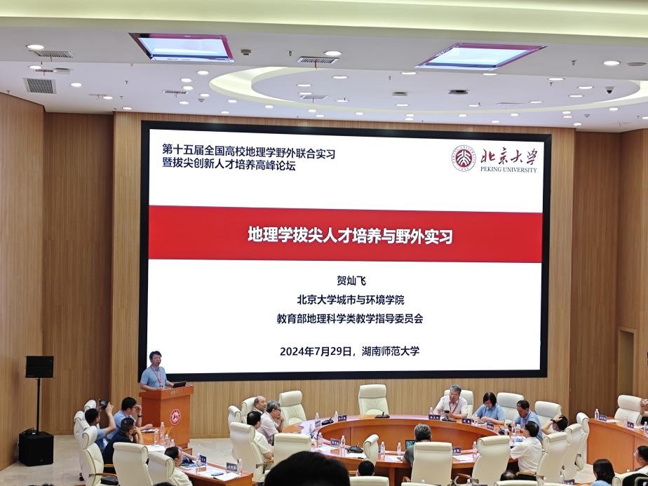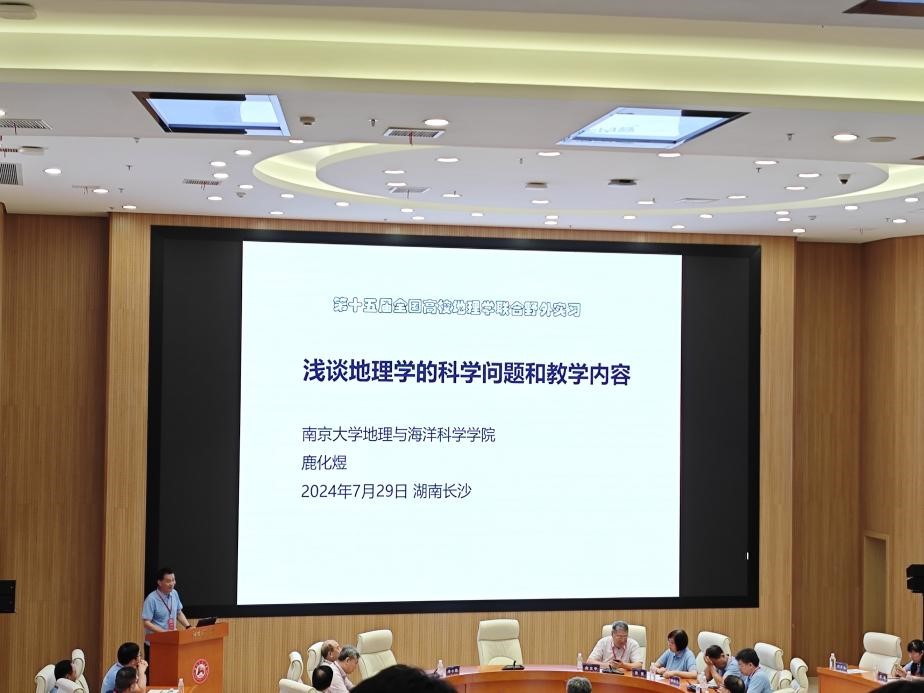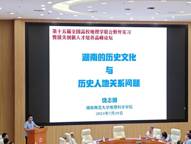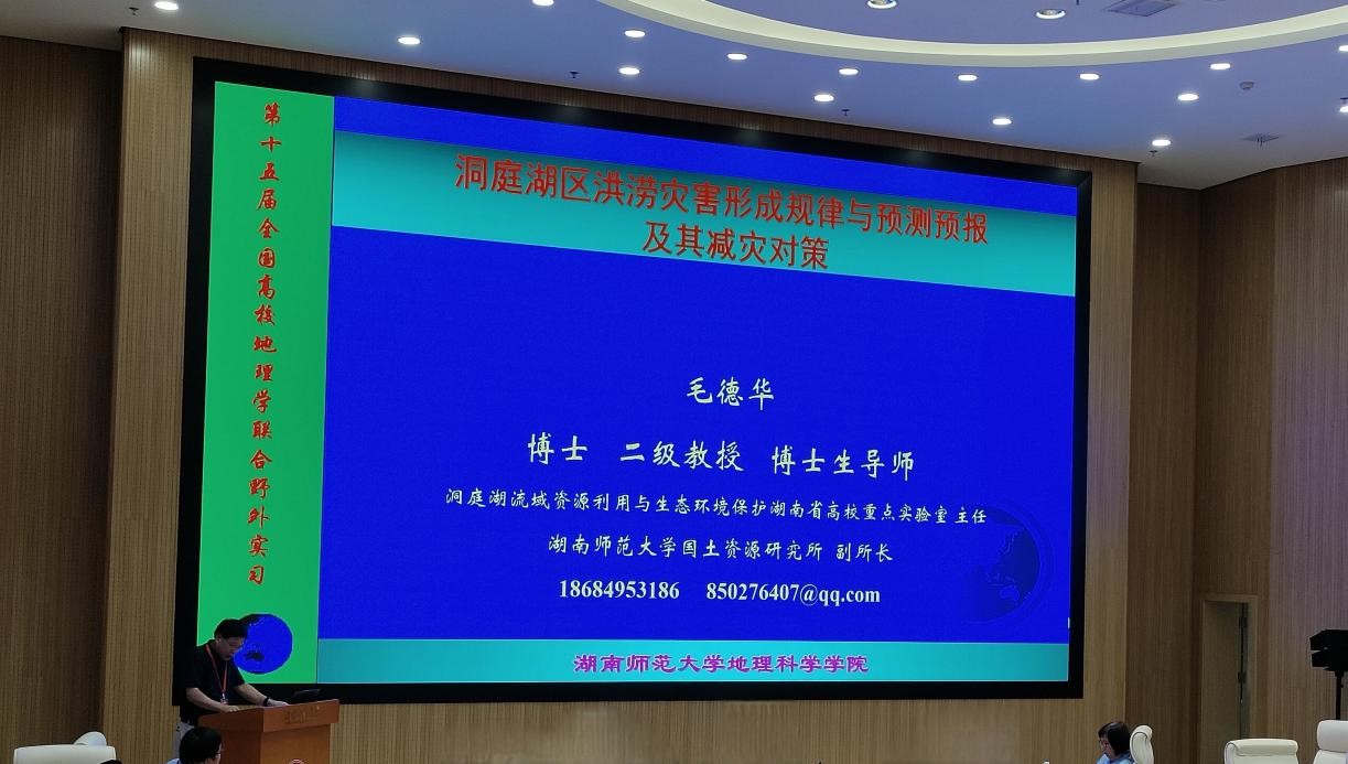 开幕式结束后,由全国大学生地理学野外联合实践教学高校联盟秘书长、华东师范大学皇冠APP体育周立旻教授主持学术报告。北京大学城市与环境学院院长贺灿飞教授作了题为《地理学拔尖人才培养与野外实习》的学术报告,介绍了地理学拔尖人才培养的背景,对比分析了国内外地理学拔尖人才培养的经验,并从勇气+信念、价值、能力、兴趣、思维、视野和知识七个维度分析了地理学野外实习的重要性及对地理学拔尖人才培养的意义。南京大学地理与海洋科学学院院长鹿化煜教授作了题为《浅谈地理学的科学问题和教学内容》的学术报告,他以碳排放研究为例,强调了什么是地理学的科学问题以及如何来研究地理学的科学问题,并以南京大学“拔尖计划2.0”的创新人才培养体系为例分析了地理学创新人才培养的任务和目标。湖南师范大学饶志国教授作了题为《湖南的历史文化与历史人地关系》的学术报告,他基于湖南省的重大考古发现分析了湖南省历史文化背景与历史人地关系,并结合案例,从地区尺度上介绍了洞庭湖的历史演变过程。湖南师范大学毛德华教授作了《洞庭湖区洪涝灾害形成规律、预测预报及减灾对策》的学术报告,他详细介绍了洞庭湖的水文变化情况,研究了洞庭湖区洪涝灾害的形成规律并构建了灾害预测模型,提出了洞庭湖区的减灾对策。