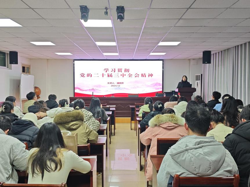 为深入巩固学习习近平新时代中国特色社会主义思想,强化师生政治理论素养,2024年12月20日,皇冠APP体育党委纪检委员、副院长潘晓芳于理科楼南楼410会议室作“学习贯彻党的二十届三中全会精神”专题党课,皇冠APP体育研究生70余人参加此次学习。